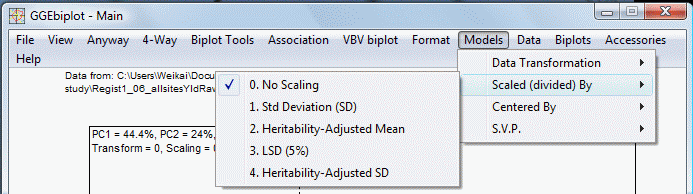 Options of data scaling in GGEbiplot are: