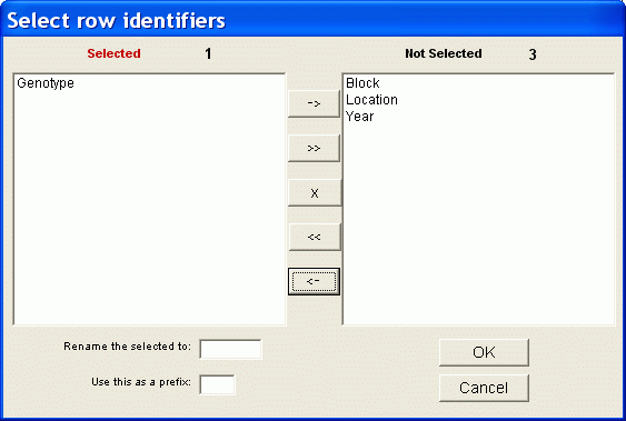 This device allows generating all possible types of multi-trait biplots. In the current example, "genotype" was selected as the entries, so a genotype by trait biplot will be generated when this form is closed.