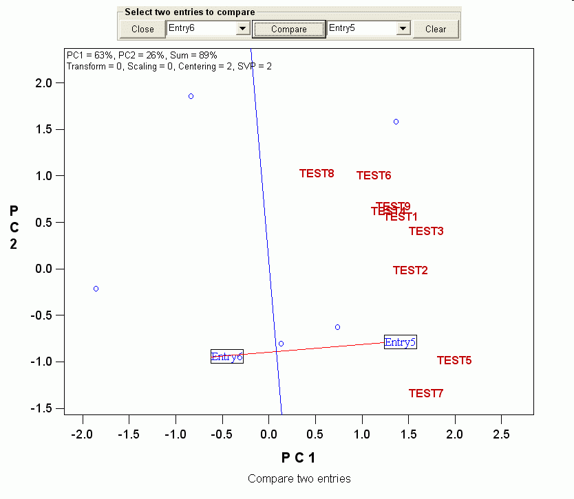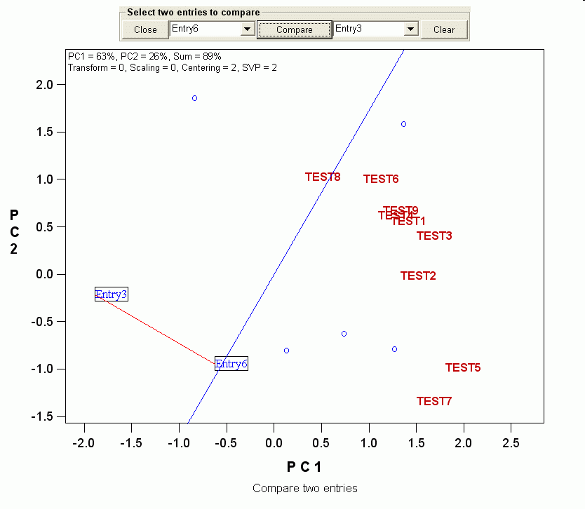 1. This method of comparing two entries is the basis of the famous which-won-where function in GGE biplot analysis.