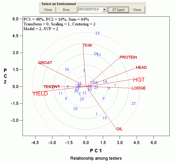 Comparing the genotype by trait biplot in Woodstock NS